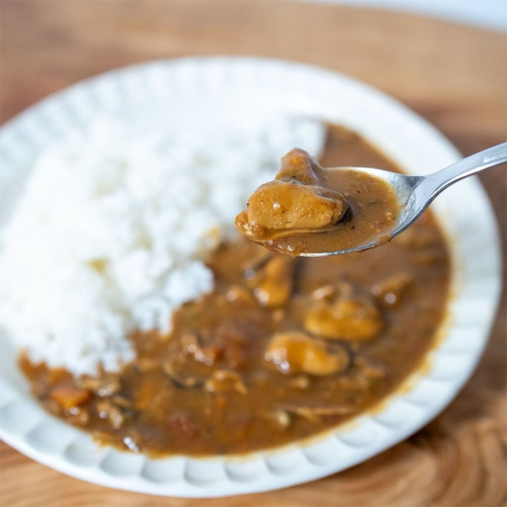 ピリ辛で魚介の風味が香るカイノクチ特薦の貝カレーです。
